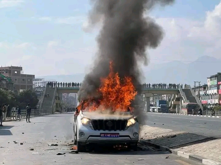बालकुमारीमा मन्त्रीको गाडीमा आगजनी
