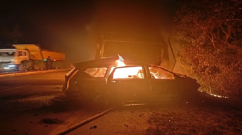 भारतमा गुडिरहेको कारमा आगो लाग्दा जलेर ६ जनाको मृत्यु