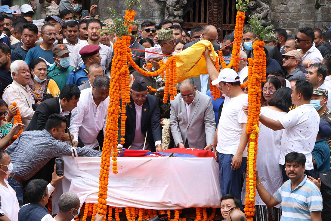 राजकीय सम्मानका साथ नेम्वाङको अन्त्येष्टि : छोराहरू मेङ्सो र सुहाङले दिए दागबत्ती