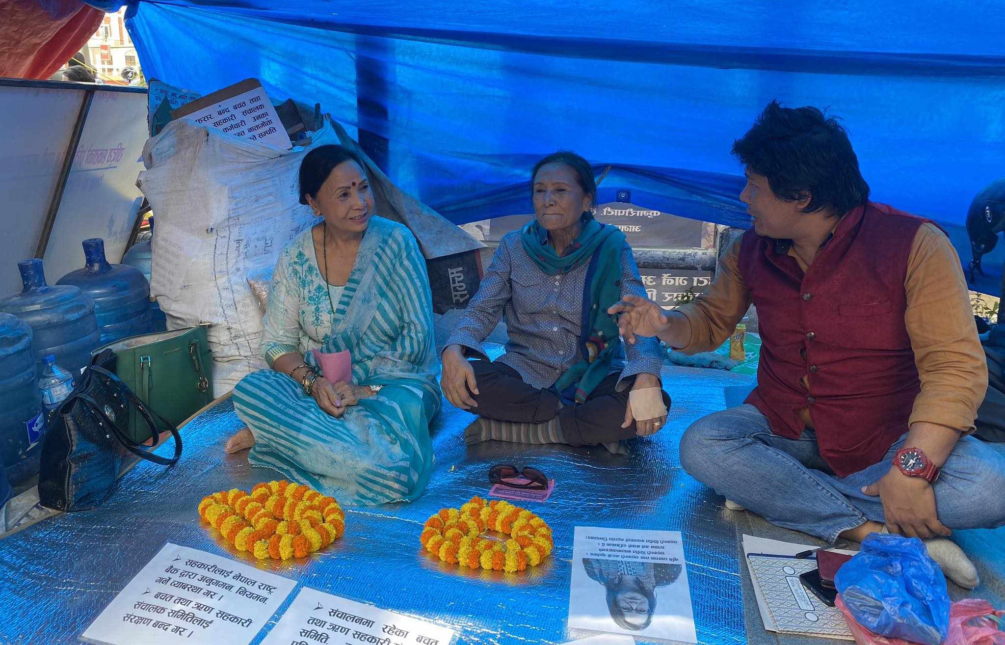 सहकारीमा फसेको रकम फिर्ता माग्दै रिले अनसनमा बसे बसुन्धरा र चैत्यदेवी