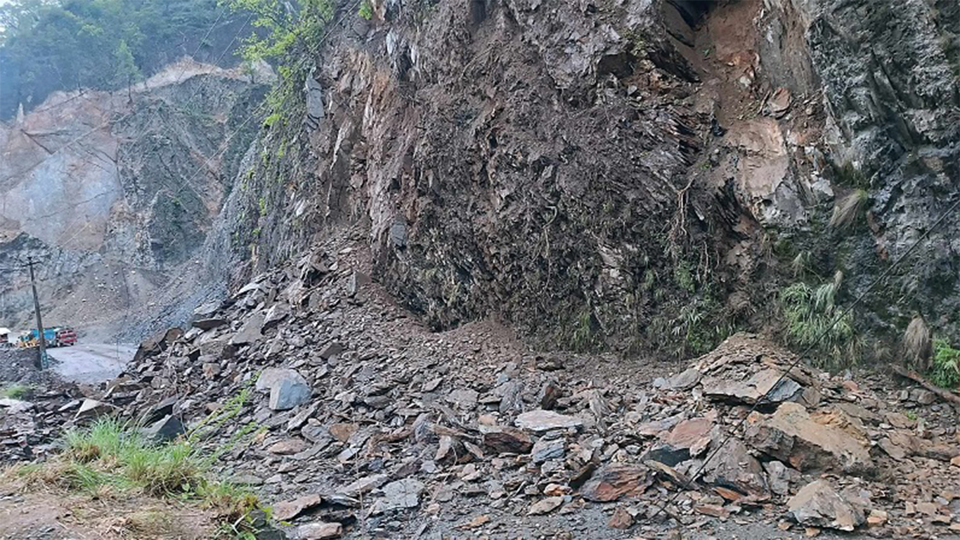 नारायणगढ–मुग्लिनमा पहिरो रोकिएन, बाटो अझै अवरुद्ध