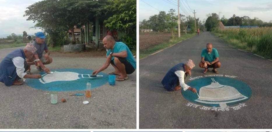 चितवनको सडकमा घण्टीको चित्र बनाएकामा रास्वपाले माग्यो माफी