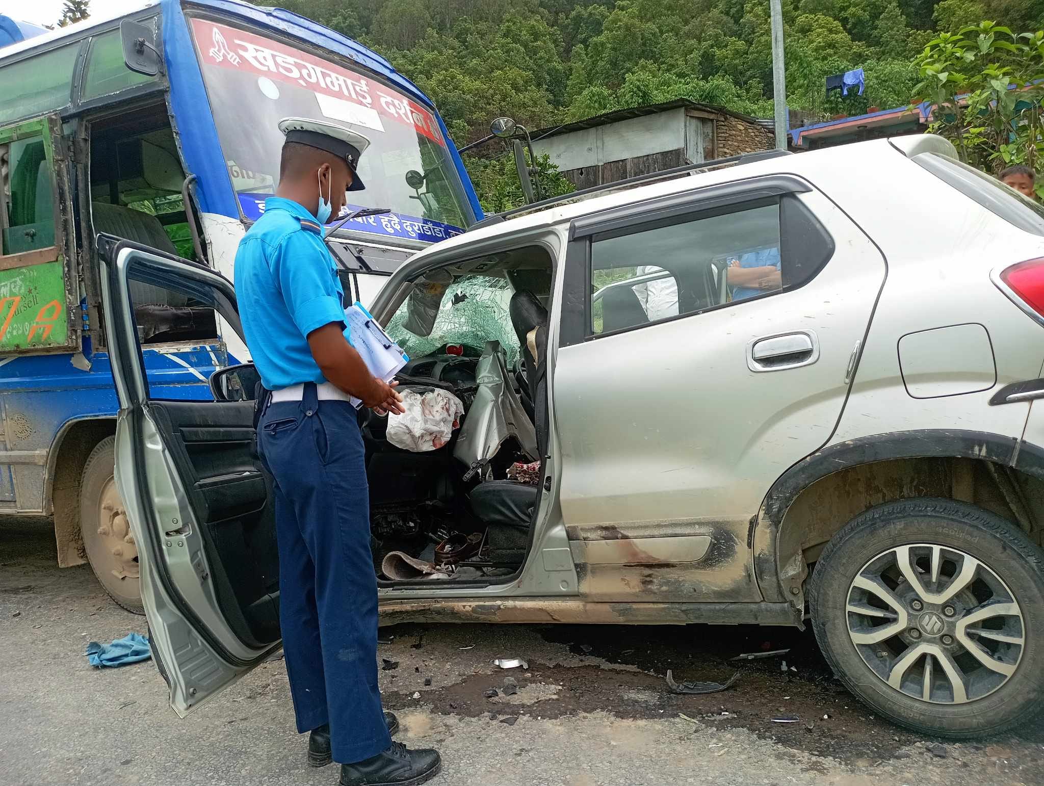 भानुमा बस र कार एक आपसमा ठोक्किँदा ५ घाइते
