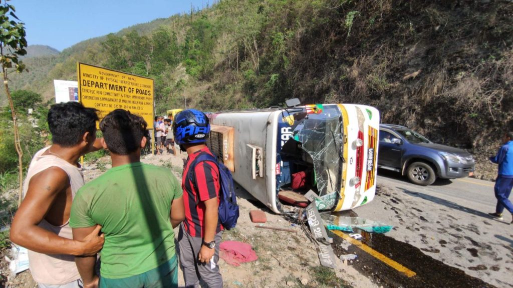 मुग्लिनमा बस दुर्घटना हुँदा ३२ जना घाइते
