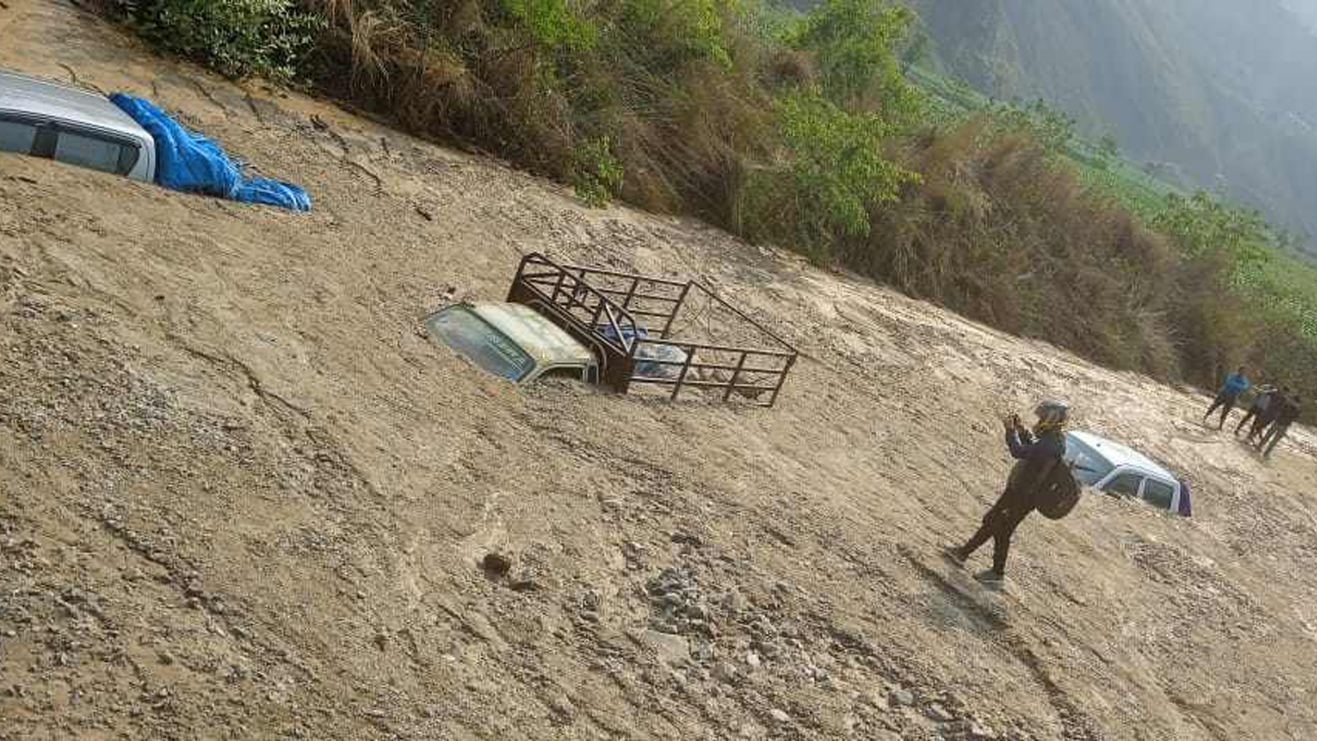वर्षासँगै आएको लेदोले एक घर र चारवटा गाडी पुरिए