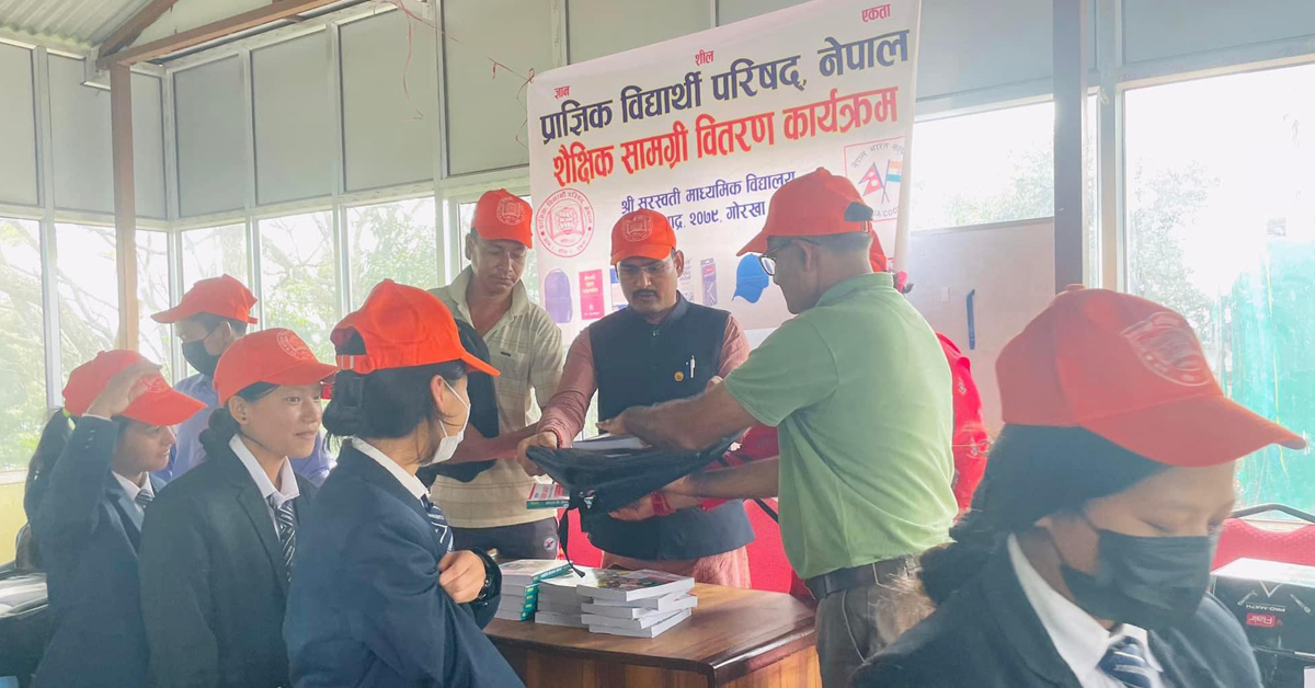प्राज्ञिक विद्यार्थी परिषद् नेपालद्वारा गाेरखाको सरस्वती मा.विमा शैक्षिक सामग्री वितरण
