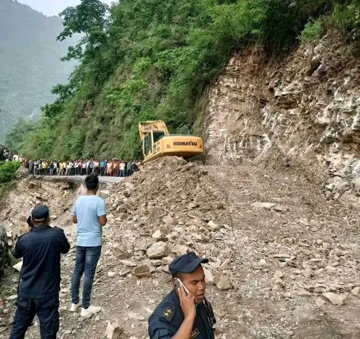 चितवनको तोपे खोलामा सुक्खा पहिरो, सडक फेरि अवरुद्ध