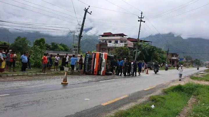 आँबुखैरेनीमा बस दुर्घटना हुँदा १३ जना घाइते