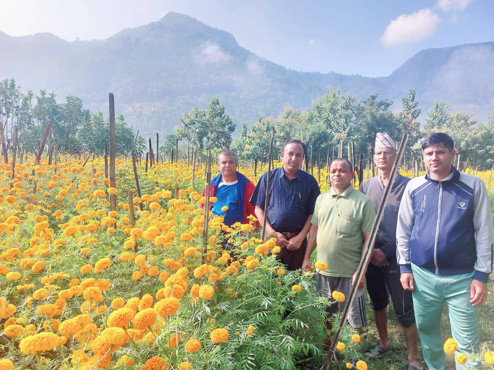 बन्दीपुरको थुम्कामा ५० रोपनी क्षेत्रफलमा व्यवसायीक सयपत्री फूलको खेती