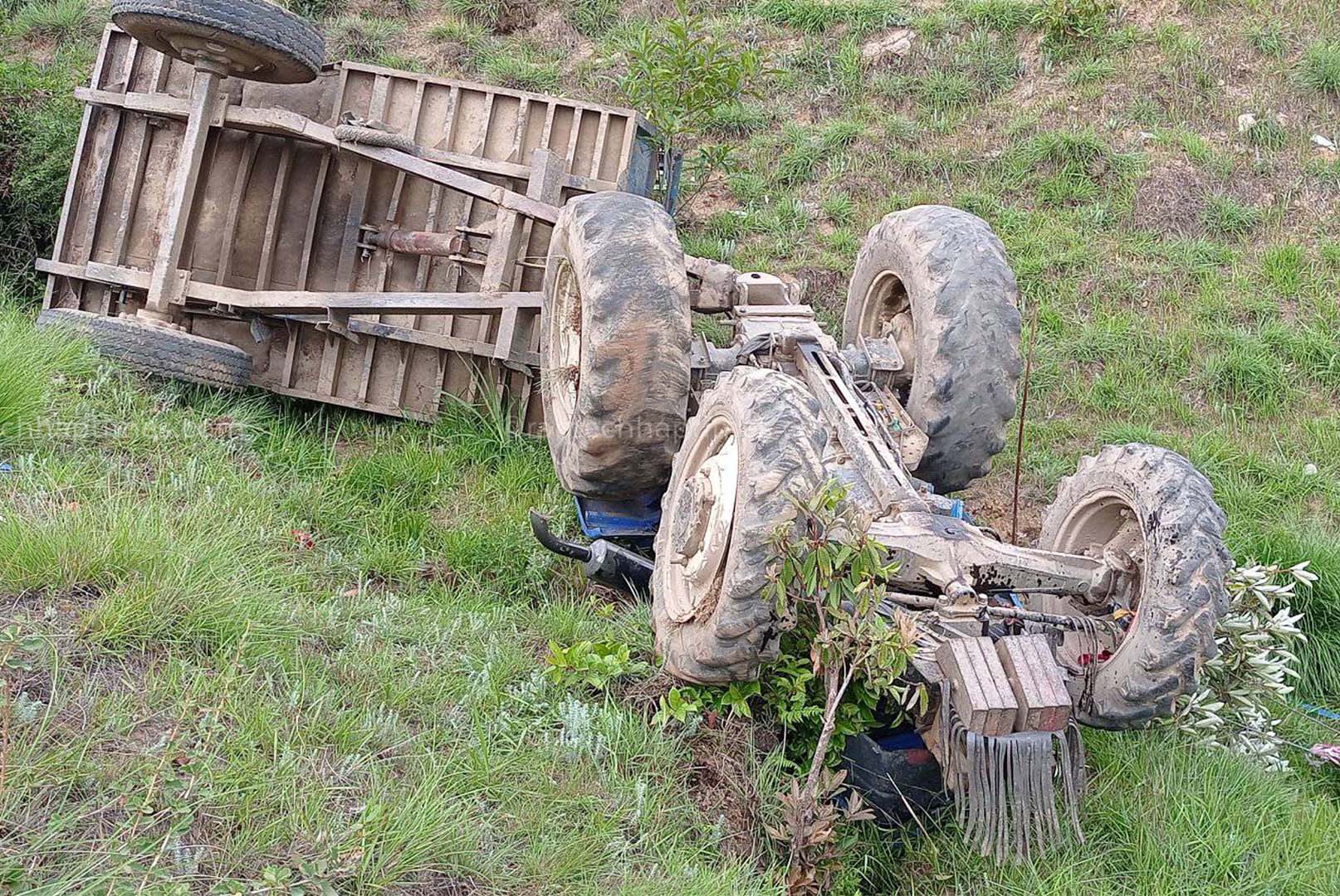 आँबुखैरेनीमा ट्याक्टर दुर्घटना हुँदा चालक र सहचालक घाइते