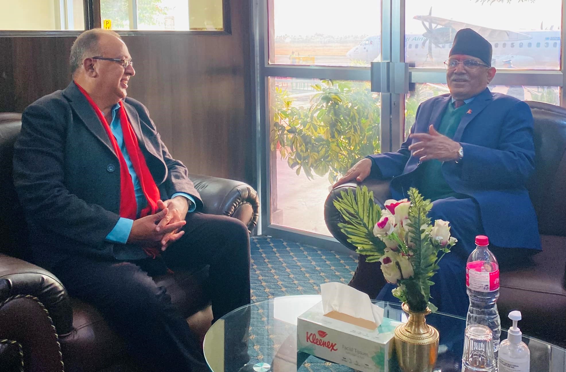माओवादी अध्यक्ष प्रचण्ड र कांग्रेस नेता भण्डारीबीच भेटवार्ता