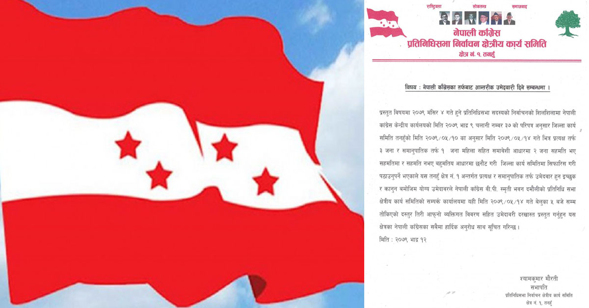 उम्मेदवारीका लागि कांग्रेस प्रतिनिधिसभा क्षेत्र न. १ तनहुँको आह्वान