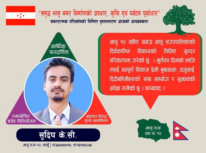 भानु १२ को वडा अध्यक्षमा सुदिप के.सी. बलियो आकांक्षी