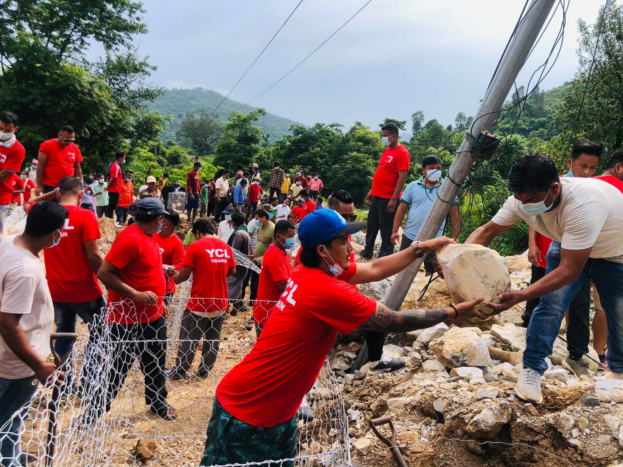 वाईसीएल तनहुँले क्षती पुर्याएको ठाउमा ग्याबिन जाली लगाउने काम सुरु