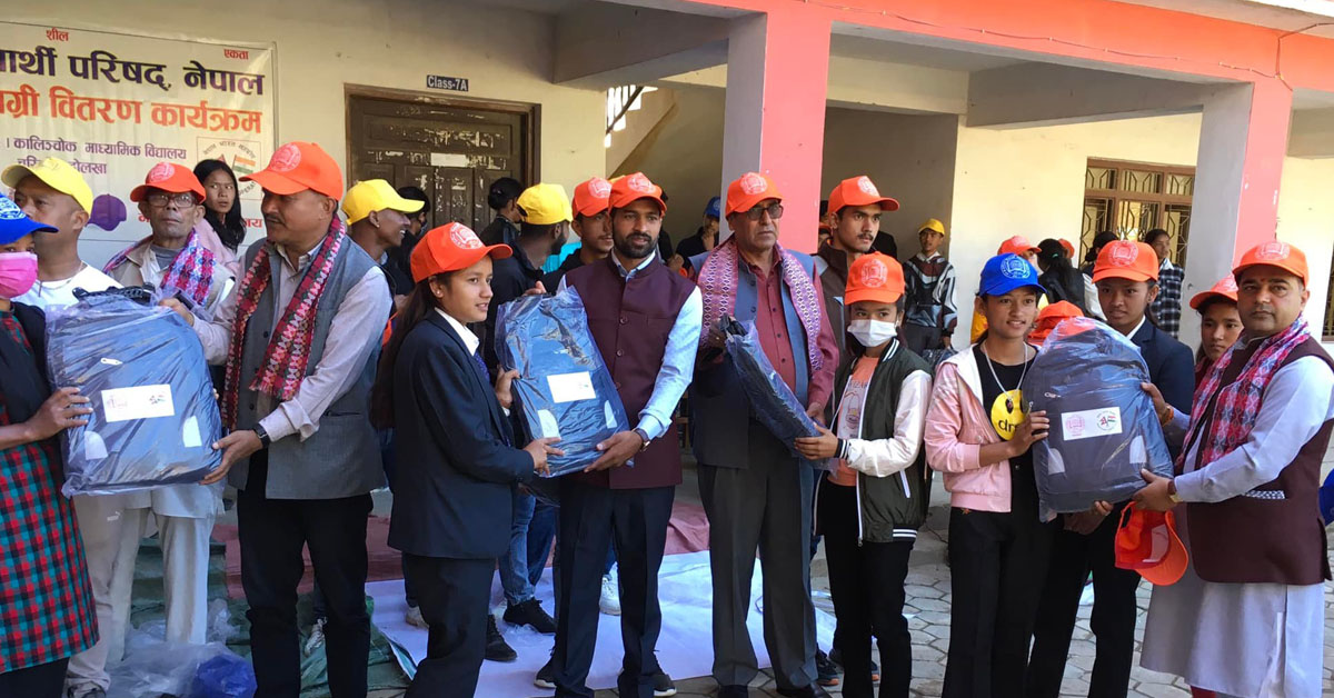 प्राज्ञिक विद्यार्थी परिषद् नेपालद्वारा दोलखाको कालिन्चोक माविमा शैक्षिक सामग्री वितरण