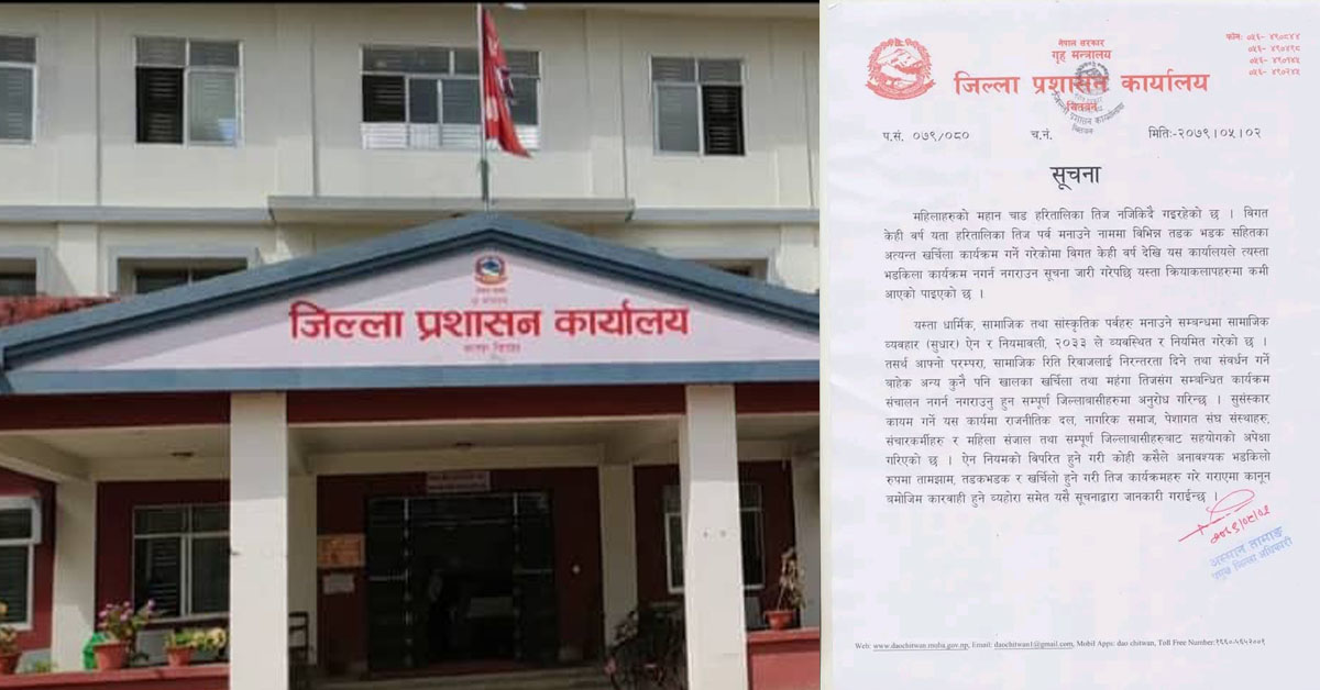 चितवन प्रशासन कार्यालयले भन्यो: भड्किलो तीज मान्नेलाई छाड्दैनौं