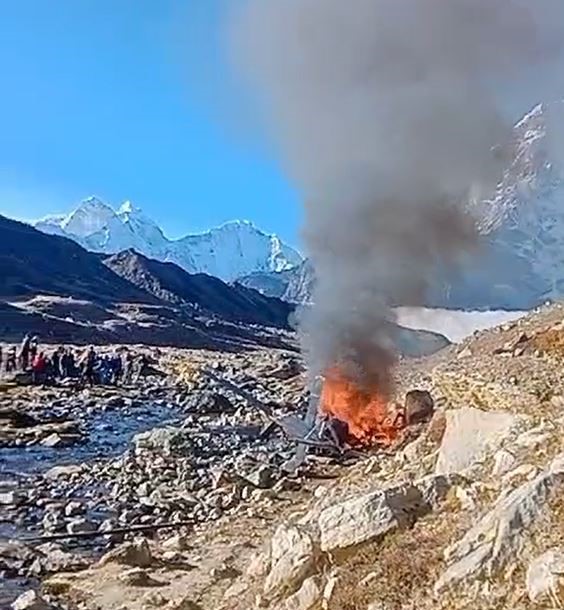 मनाङ एअरको हेलिकप्टर सोलुखुम्बुको लोबुचेमा दुर्घटना : पाइलट सकुशल