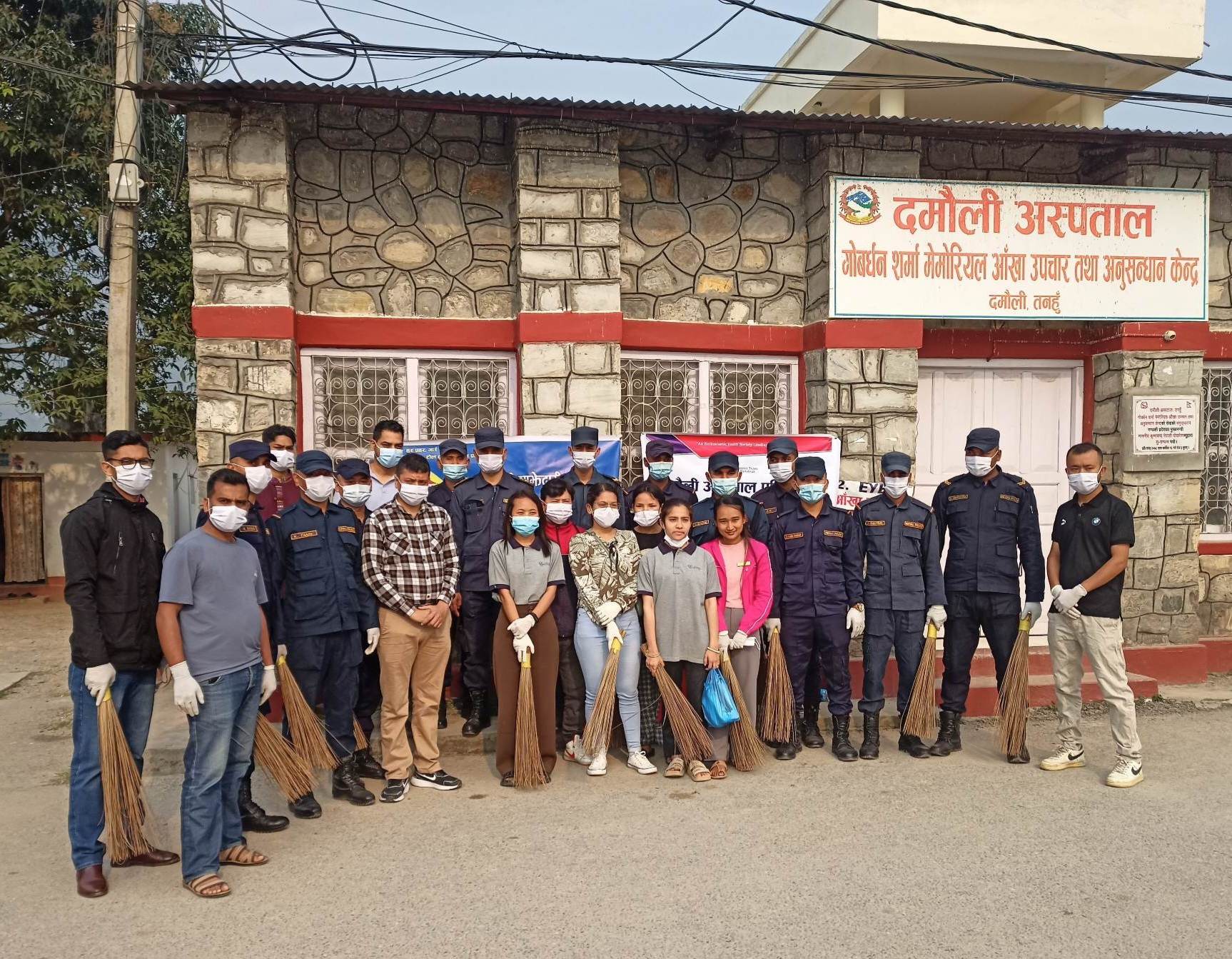 टिम नेपो तनहुँद्वारा दमौली अस्पताल परिसर सरसफाई