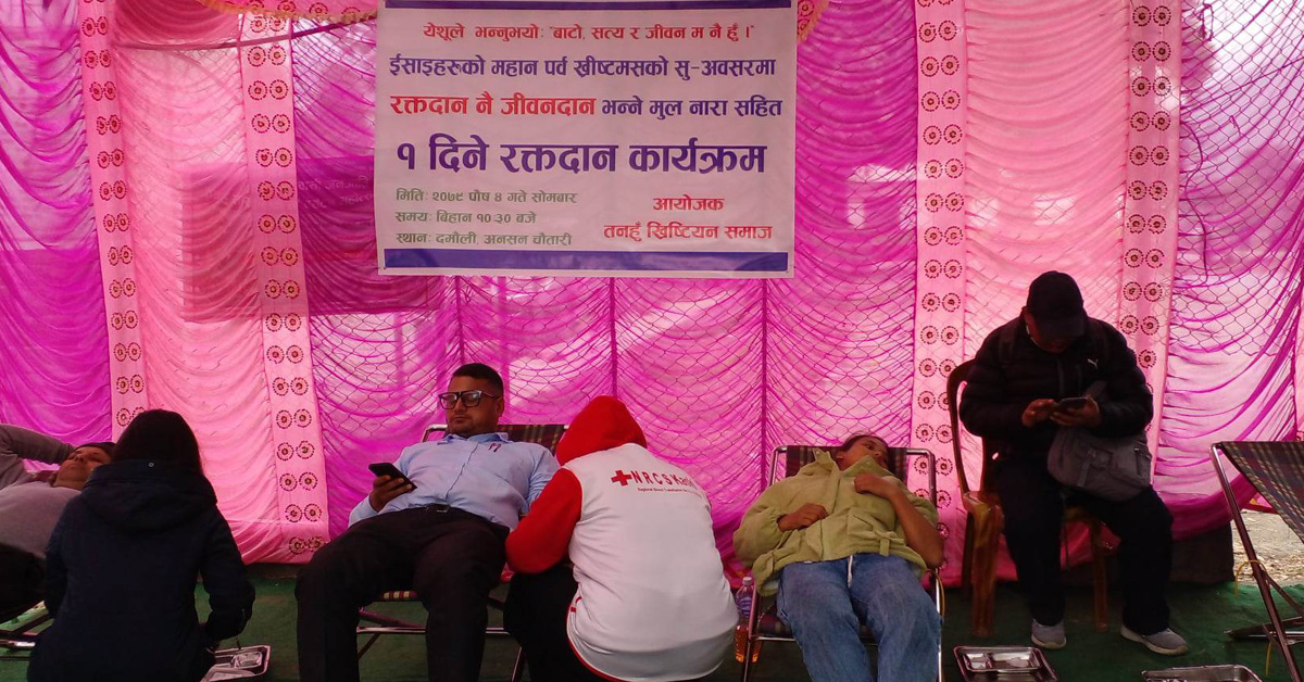 ख्रिष्टियन समाजले आयोजना गरेको रक्तदानमा ४० युनिट रगत संकलन