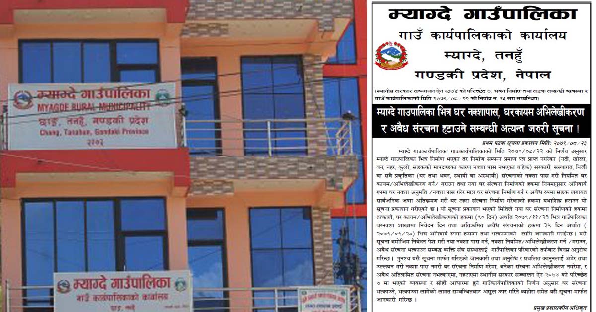 अवैध संरचना हटाउन म्याग्देले दियो ३५ दिनको समयसीमा