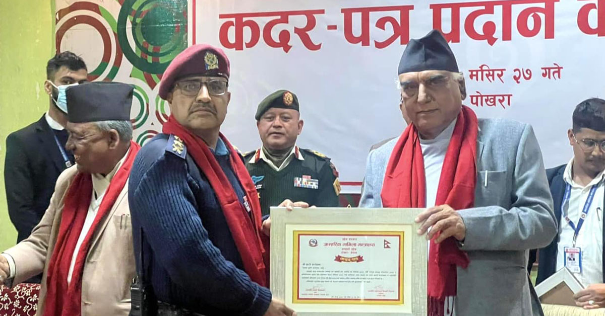 शान्तिपूर्ण निर्वाचन सम्पन्न गराएका तनहुँ प्रहरीलाई कदर पत्र द्वारा सम्मानित