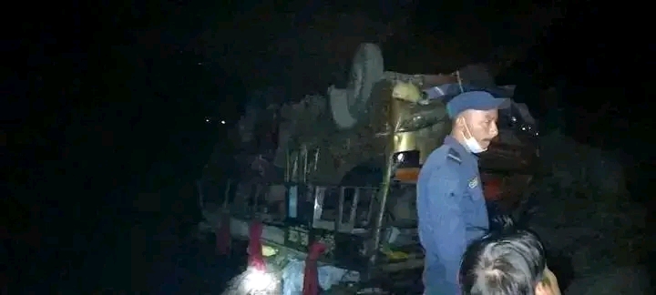 काठमाडौंबाट रुकुम जाँदै गरेको बस त्रिशूलीमा खस्यो