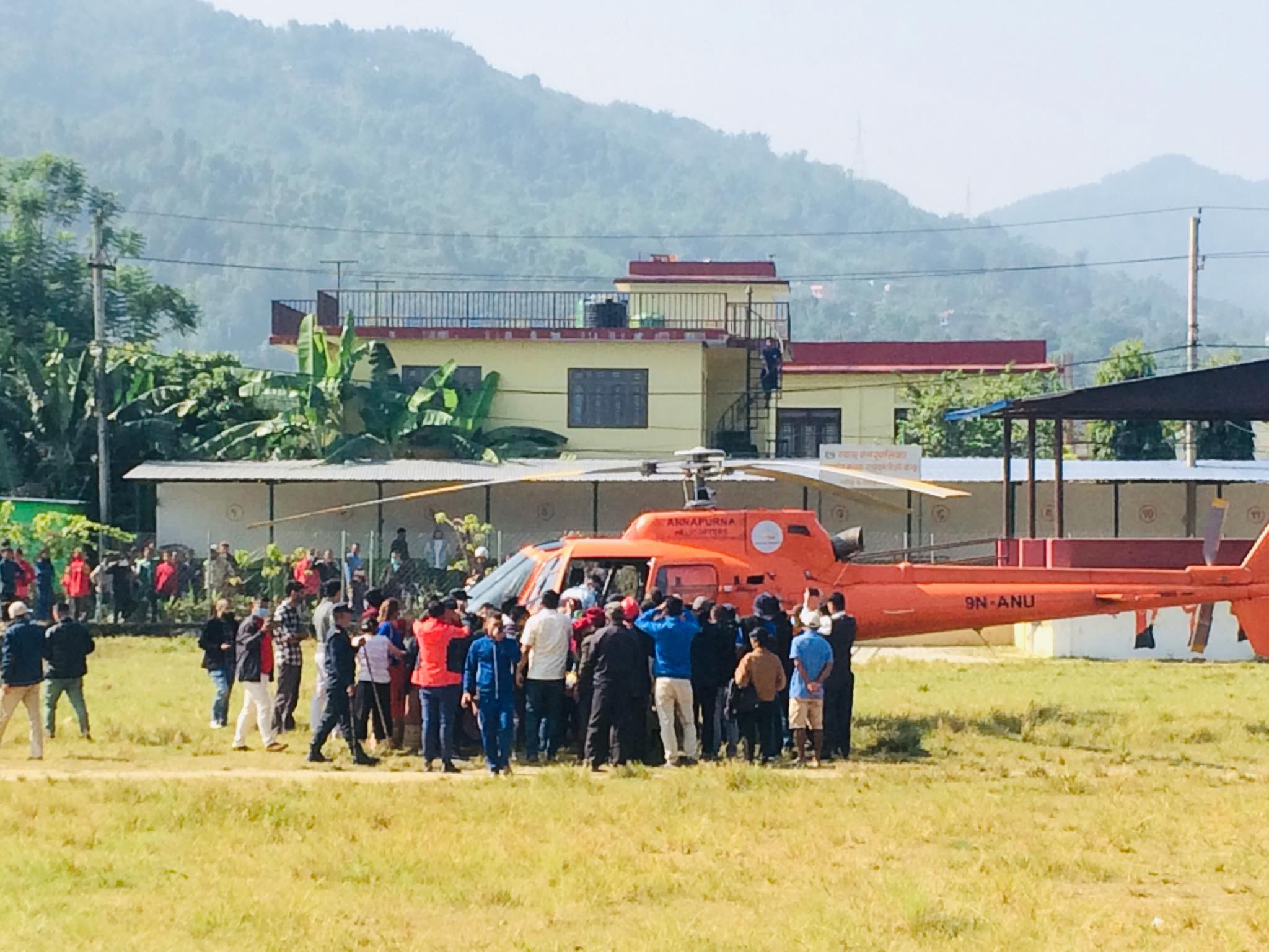 हात चुँडिएकी महिलालाई हेलिकप्टरबाट काठमाडौं लगियो