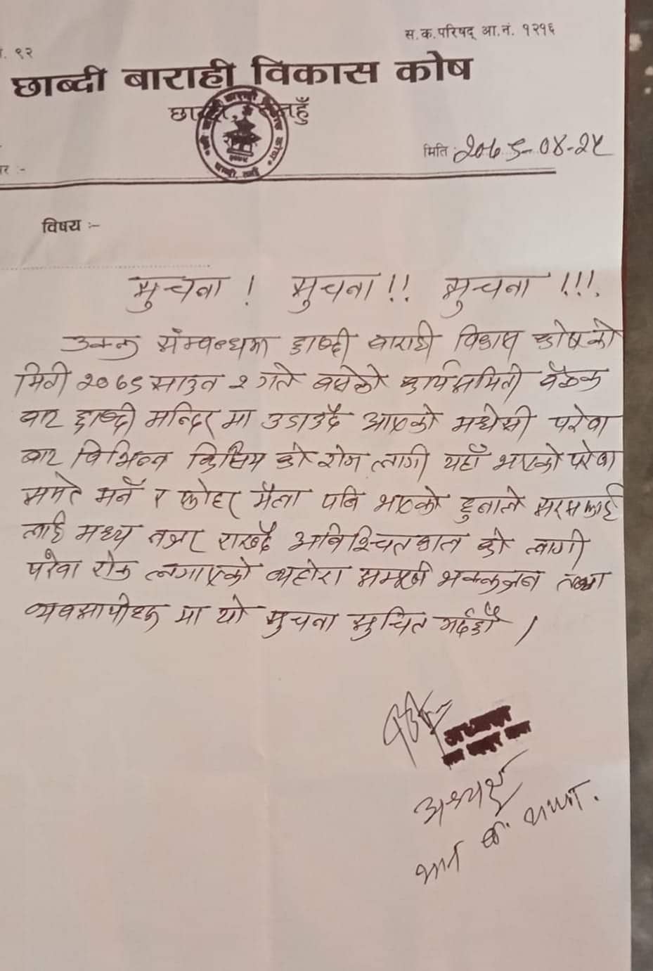 त्यस्ता प्रकारका यहाँ भएका परेवा तत्काल मर्ने र फोहोरमैला भएको कारणले अनिश्चितकालको लागि परेवाको उडाउन रोक लगाएको  छाब्दी बाराही विकास कोषका अध्यक्ष मान बहादुर थापा  ले बताए ।