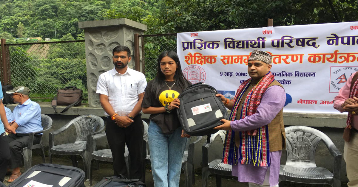 परिषद्ले सिन्धुपाल्चोक ,रसुवा, बझाङ, ताप्लेजुङ, मनाङ, मुस्ताङ, गोरखा, मुगु, डोल्पा र हुम्लामा, कपी, रेपिडेक्स, जमेक्ट्री, नेपाली बृहत् शब्दकोश, टोपी लगायतका शैक्षिक सामग्रीहरू वितरण गर्ने विद्यार्थी परिषद्का राष्ट्रिय महासचिव छितराज न्याैपाने दिए।