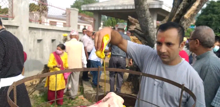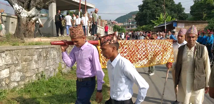 बाजागाजा सहित दमौली बजार परिक्रमा गरी फूलपाती मन्दिरमा भित्र्याएको हो।