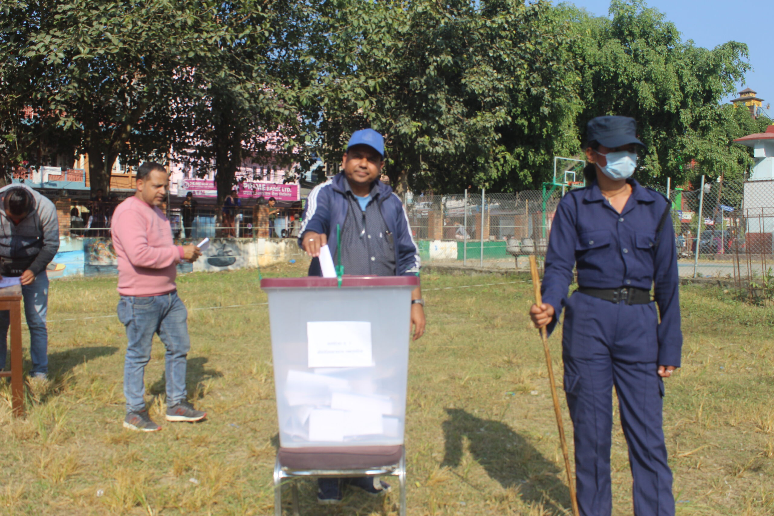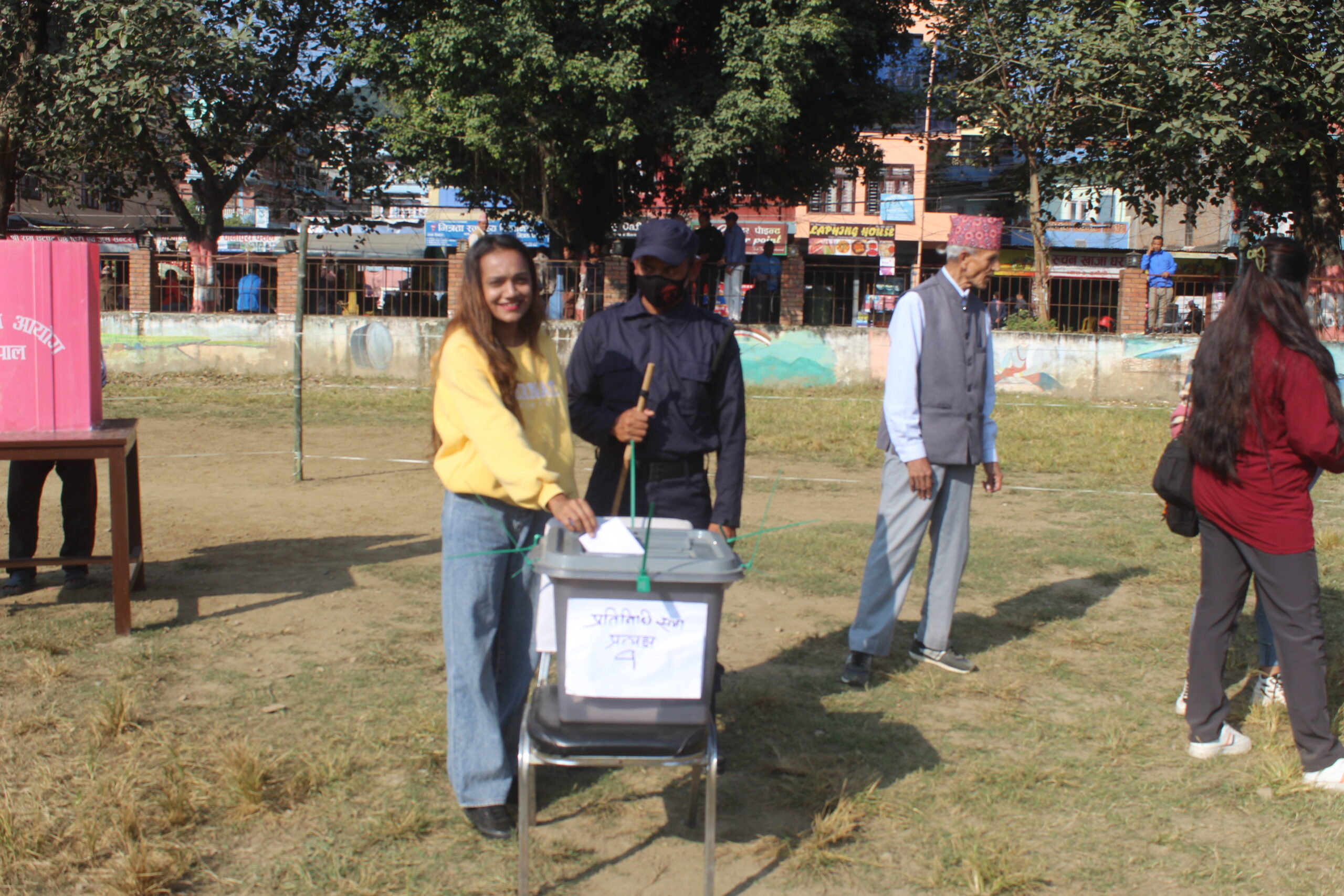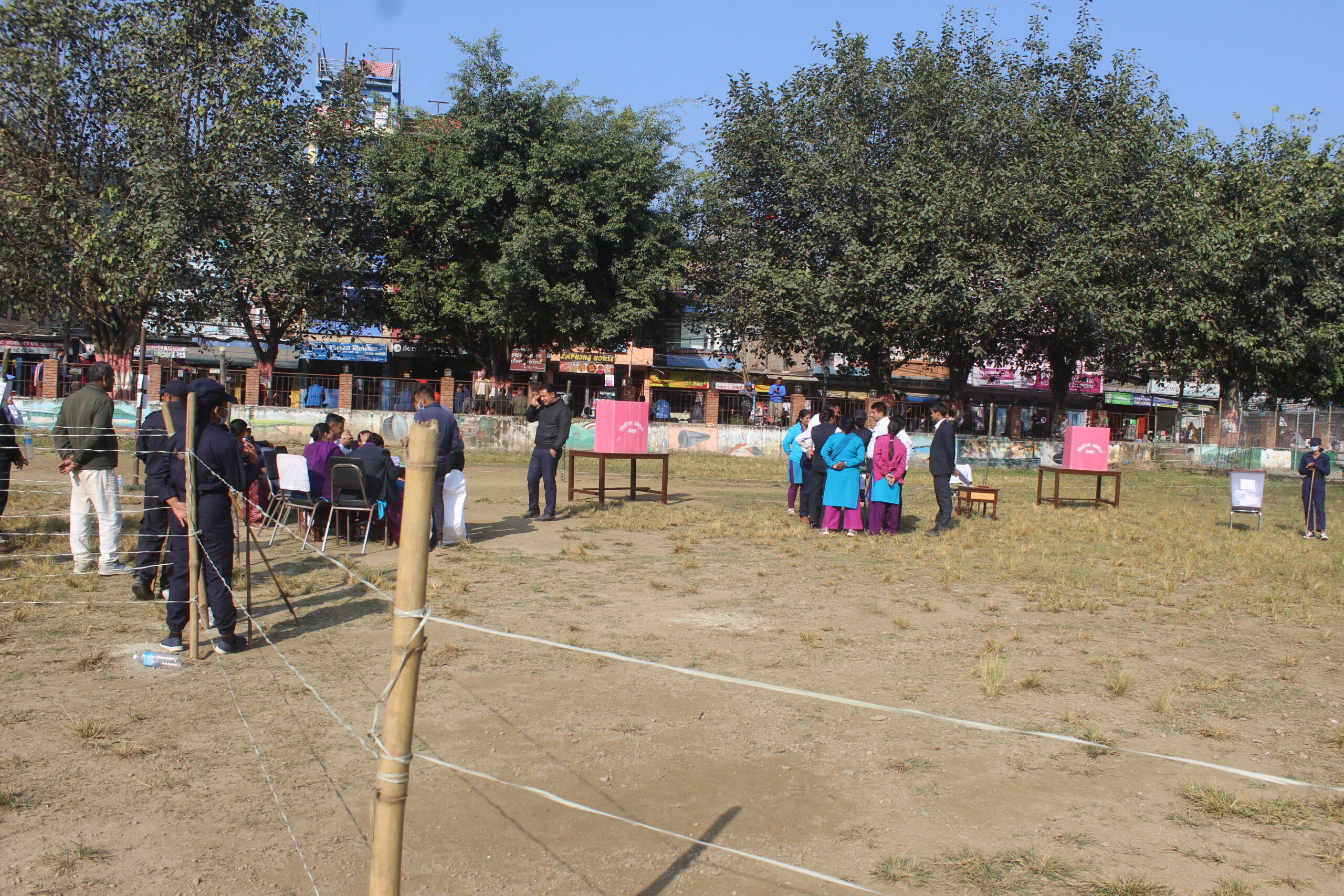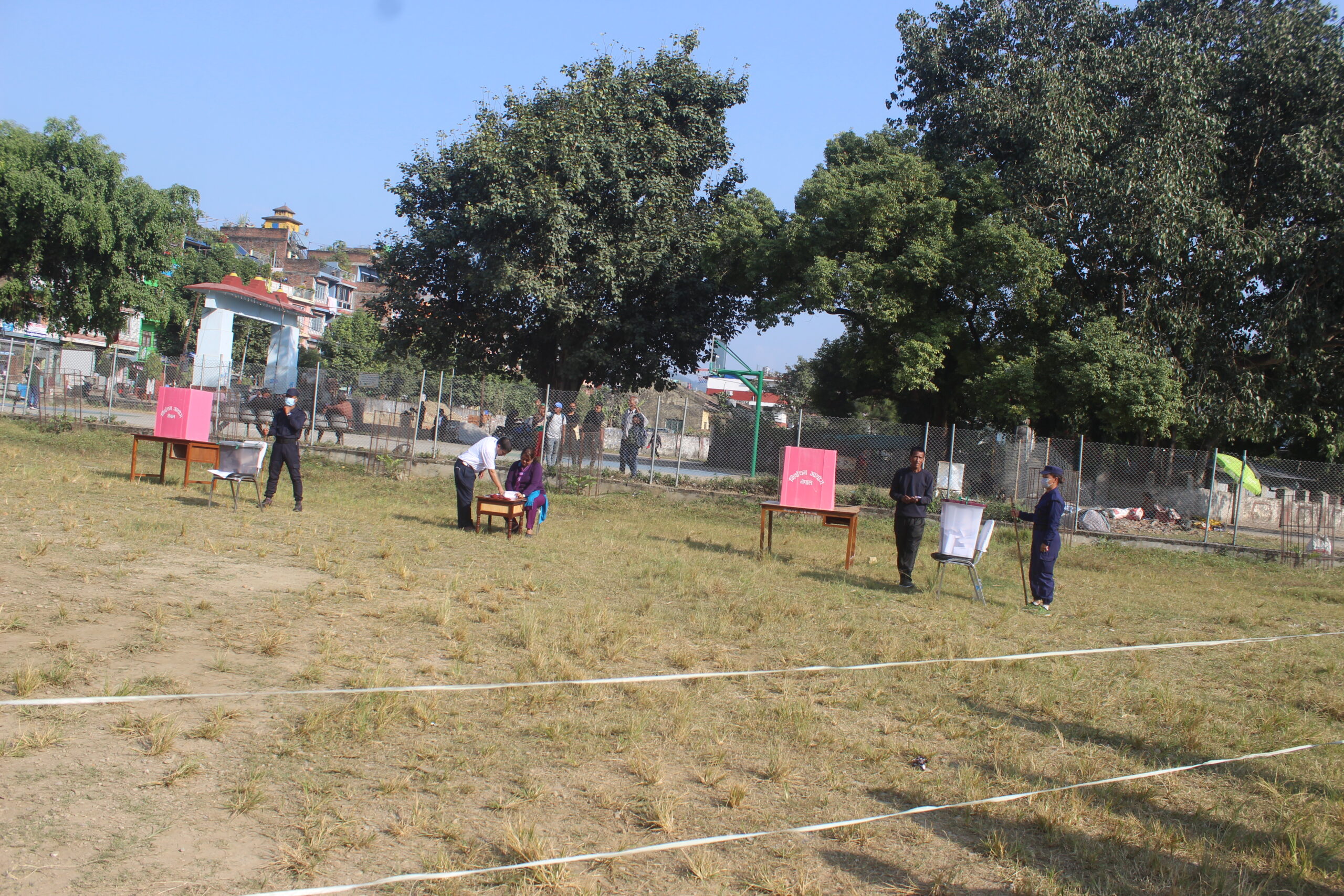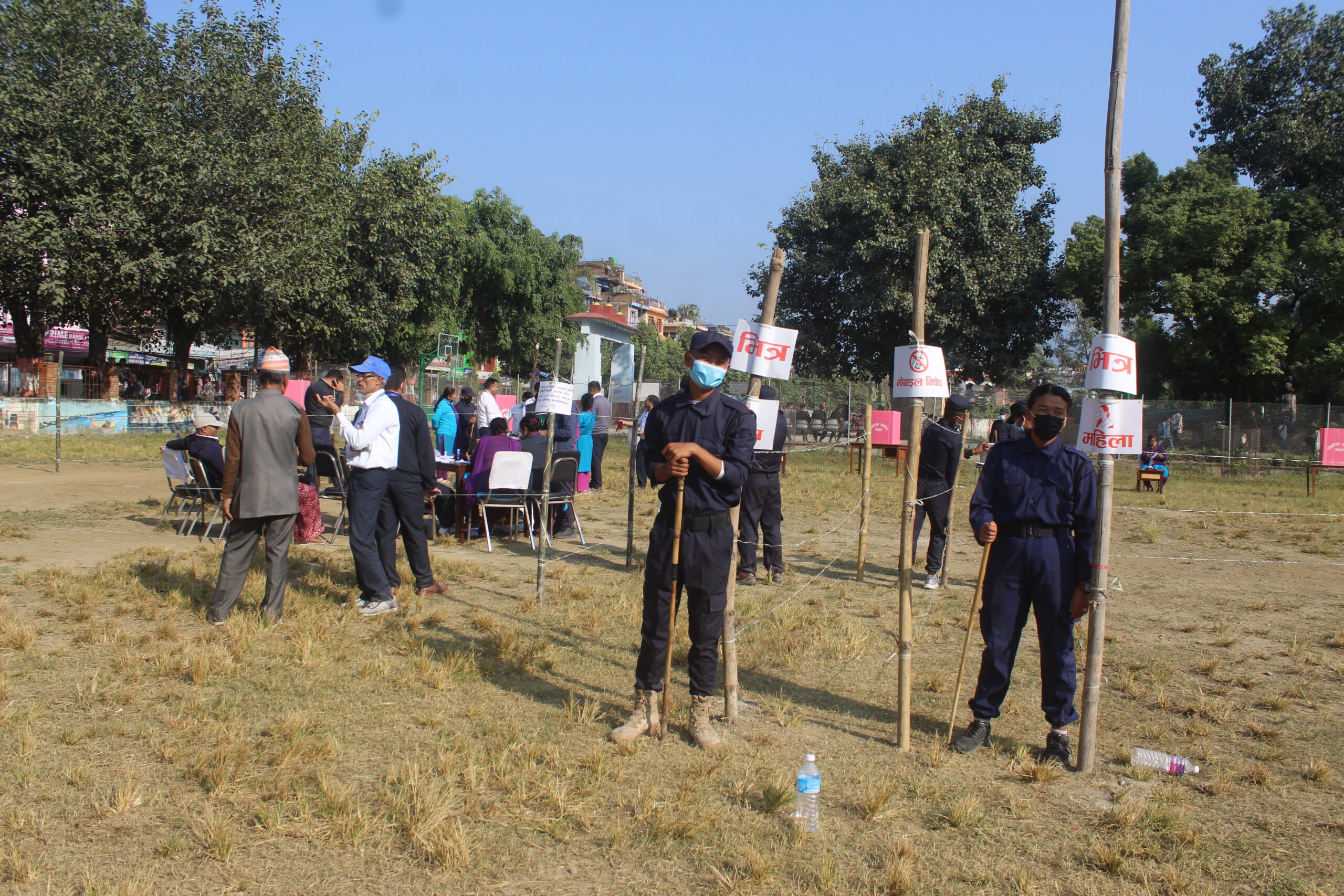 नमुना मतदानस्थलमा म्यादी प्रहरीले सुरक्षाको पहरा दिए ।नगरपालिकाका कर्मचारीहरु मतपत्र वितरण, मतदाता परिचयपत्र बाँड्न सहयोग गरे ।