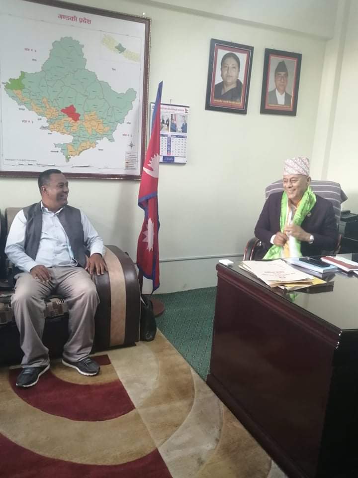 उक्त टोलीले गण्डकी प्रदेशका माननीय मुख्य मन्त्री कृष्ण चन्द्र नेपाली पोख्रेल, भौतिक पुर्बाधार, सहरी विकास तथा यातायात व्यवस्था माननीय मन्त्री कुमार खड्का र कानुन,संचार तथा प्रदेश सभा मामिला माननीय मन्त्री बिन्दु कुमार थोपा संग भेटघाट तथा छलफल समेत भएको थियो भने नब नियुक्त मन्त्री बिन्दु कुमार थोपालाई बधाई समेत दिएका आलेले जानकारी गराएका हुन् ।