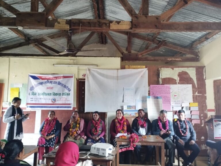 दमौली : तनहुँको व्यास नगरपालिका- १४ केशवटारमा ८ दिने उद्यमशिलता बिकास तालिम सम्पन्न भएको छ। गरिबी निवारणका लागि लघु उद्यम बिकास कार्यक्रमले स्थानीय स्तरमा रहेका गरिबको रेखा मुनि रहेका व्यक्तिहरुलाई विभिन्न किसिमका उधमशिलता तथा सीप बिकास सम्बन्धि तालिम प्राप्त गरि आर्थिक अवस्था सुधार गर्ने लक्ष्यका साथ कार्यक्रम सम्पन्न भएको हो ।