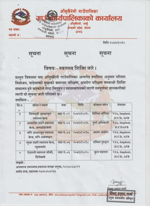 आँबुखैरेनीका सबै वडामा स्वास्थ्य शिविर हुने