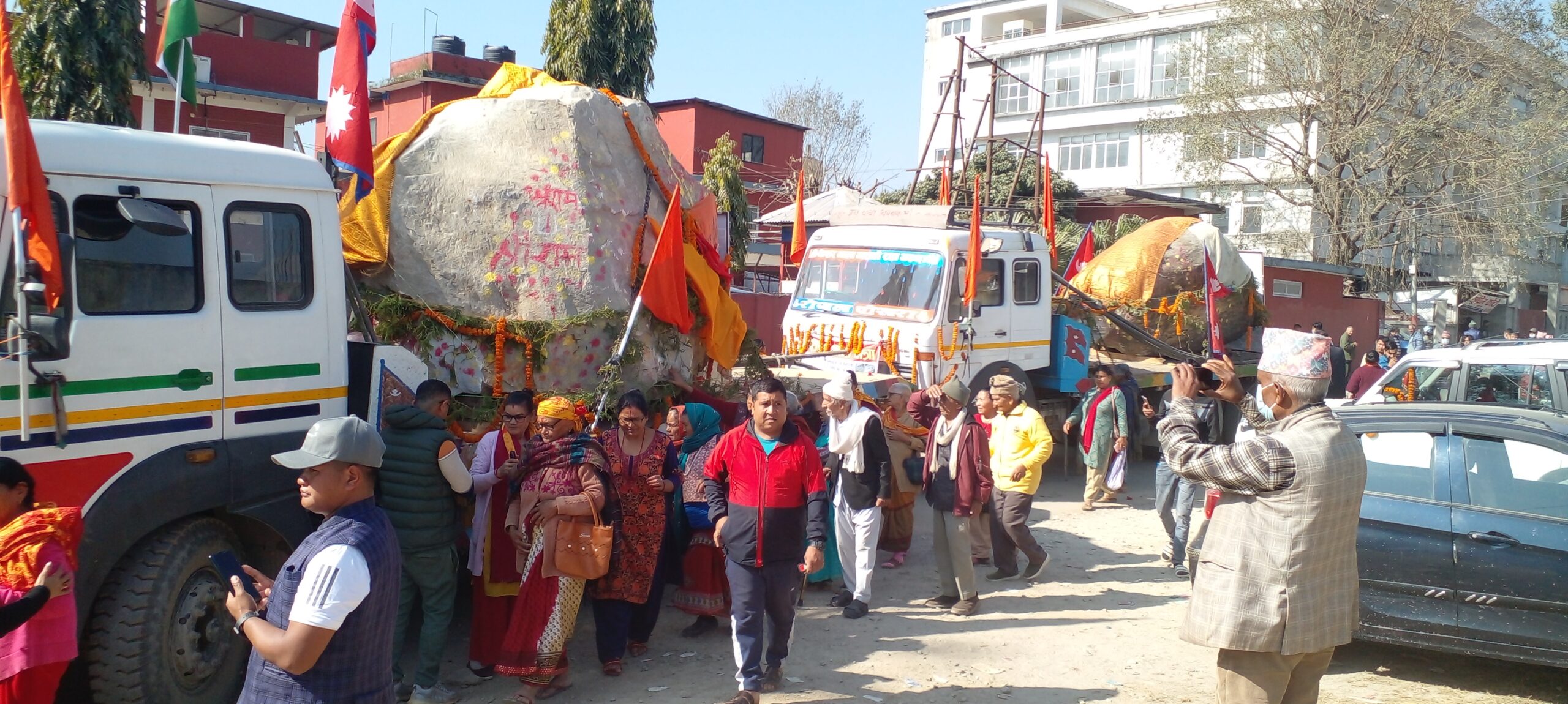 दमौली : भारतको अयोध्यामा निर्माणाधीन श्रीराम मन्दिरमा राखिने भगवान श्रीरामको मूर्ति बनाउनका लागि कालिगण्डकी नदीबाट निकालिएको शिला दमौली आइपुगेको छ । बिहिबार पूजाआजा सहित गलेश्वरधाम हुँदै बेनीबजारमा शोभा यात्रा गरी बिदाई गरिएको शिला शुक्रवार दमौलीमा आइपुगेका हुन् ।