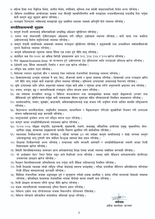 देशको राष्ट्रियता, भौगोलिक अखण्डता, राष्ट्रिय स्वाधिनता र स्वतन्त्रतालाई आँच पुग्न नदिन आफ्नो सङ्गठन जस्तोसुकै बलिदानी गर्न पनि तयार रहेको बताएका छन् ।