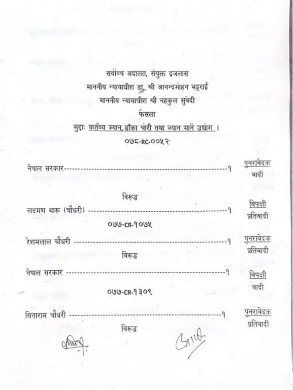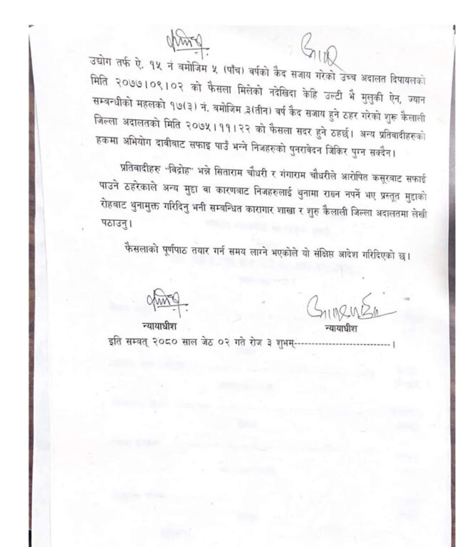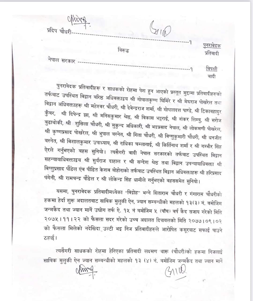 मंगलबार इजलासले चौधरीविरुद्ध उच्च अदालतको फैसला मिलेकै देखिएकाले जन्मकैदको फैसला सदर हुने ठहर गरेको हो । चौधरीले यो मुद्दामा २० वर्ष कैद सजाय पूरा गर्नुपर्नेछ ।