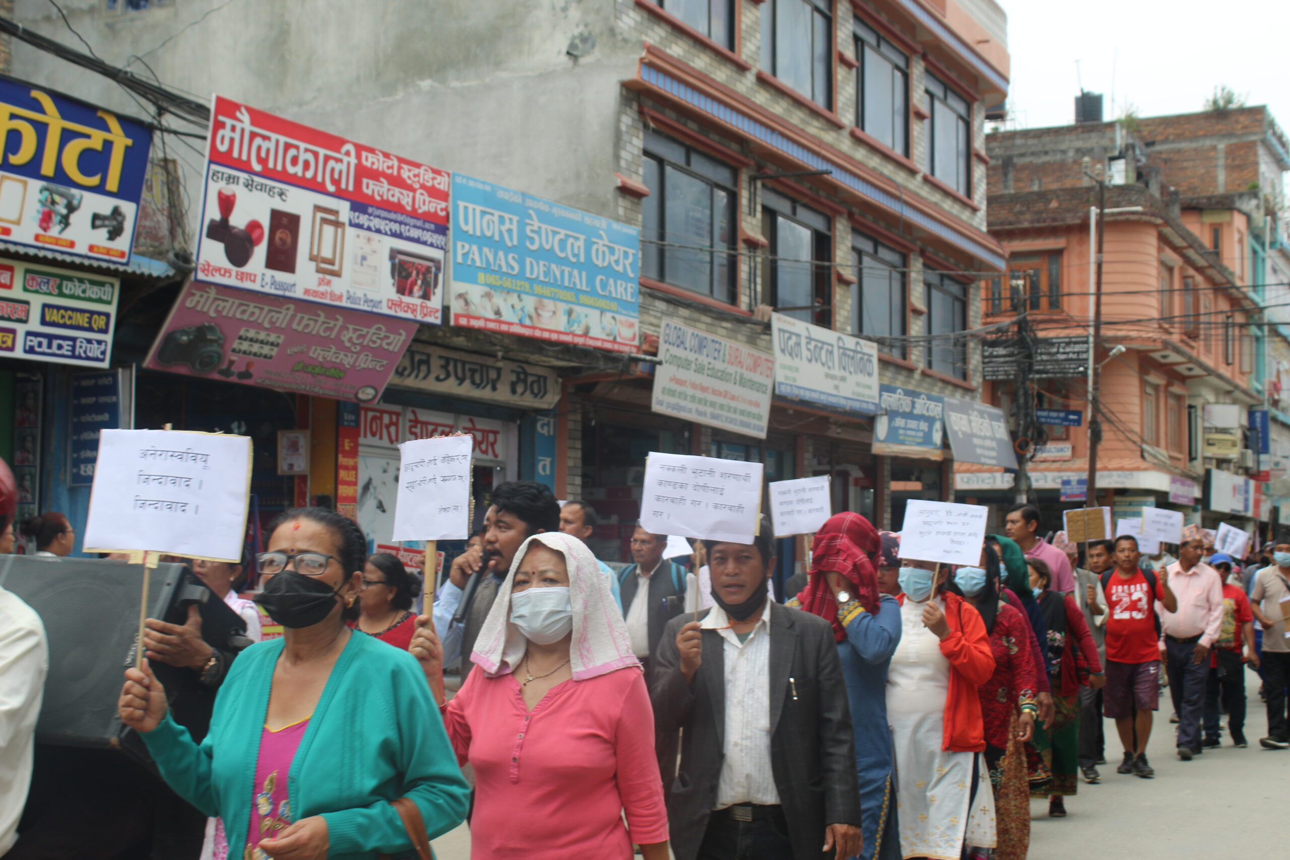 बुधवार एकीकृत समाजवादीघटकका संगठनहरूले नक्कली भुटानी शरणार्थी प्रकरणका दोषीहरूलाई छिटो भन्दा छिटो कानूनी दायरामा ल्याई कडा कारबाही गर्नुपर्ने भन्दै प्रदर्शन गरेका हुन् ।