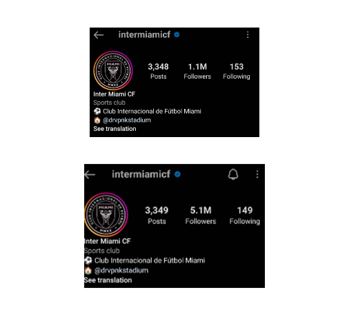 पोस्ट राखिसकेपछि अहिलेसम्म इन्टर मियामीको फेसबुक पेजमा नौ लाख बढी फलोअर पुगेका छन् । त्यस्तै इन्स्टाग्राममा फलोअरको सङ्ख्या ५१ लाख नाघेको छ ।