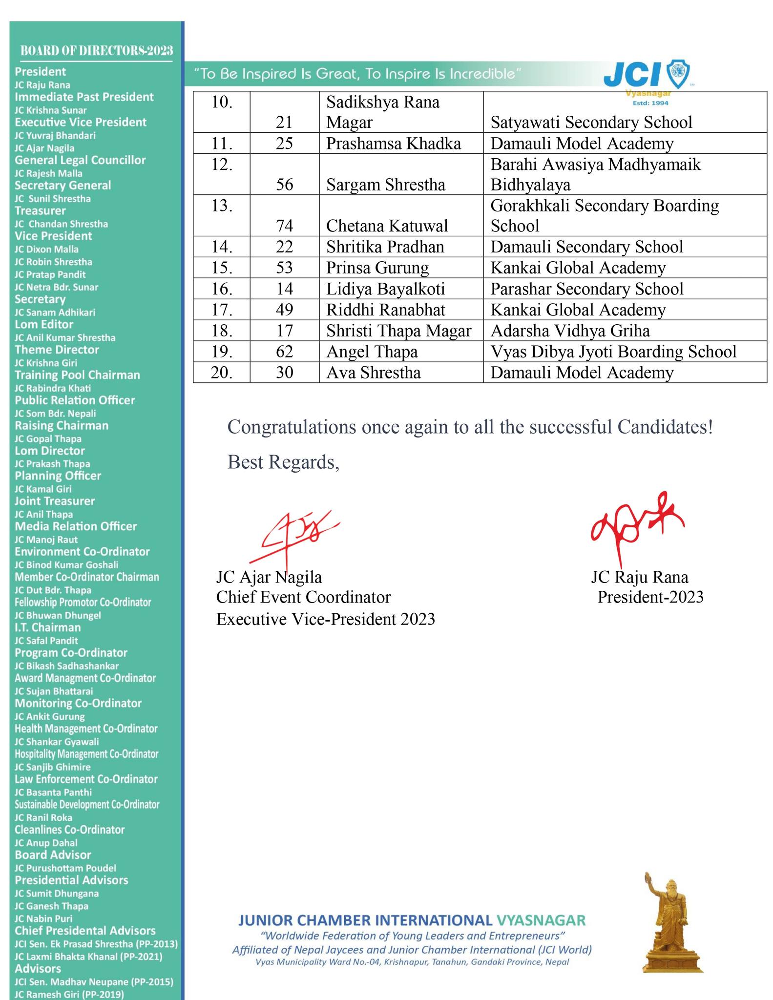 दमौली : जेसीआई व्यास नगरले साइनिङ स्टारको नवौं संस्करणका लागि २० बालबालिका छानिएका छन् । शुक्रवार र शनिवार भएको खुल्ला अडिसनबाट टप २० बालबालिका छनाेट गरिएकाे जेसीआइ व्यास नगरका महासचिव सुनिल श्रेष्ठले जानकारी दिए ।