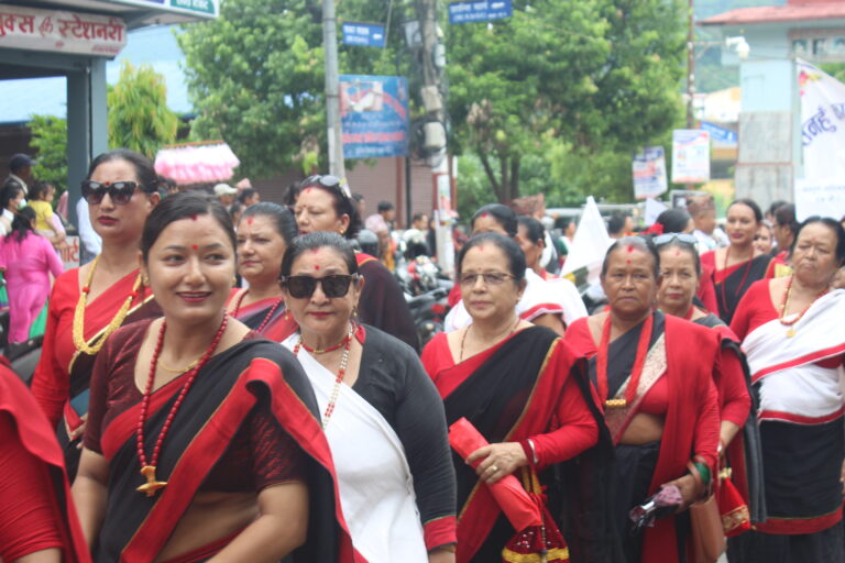 आ–आफ्नो वेशभूषा र बाजागाजासहित निकालिएको र्याली उद्योग वाणिज्य संघ तनहुँको भवनमा पुगेको थियो। त्यहाँ कार्यक्रम आयोजना गरिएको छ ।