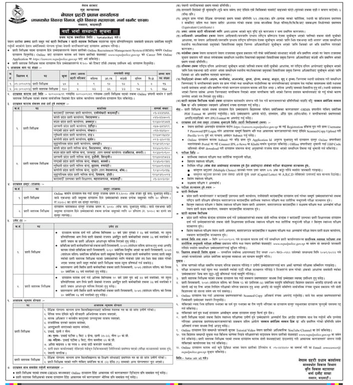 प्रहरी प्रधान कार्यालय नक्सालले निकालेको सूचना अनुसार दरखास्त फारम आउँदो मंसिर २९ गतेसम्म तोकिएको छ ।