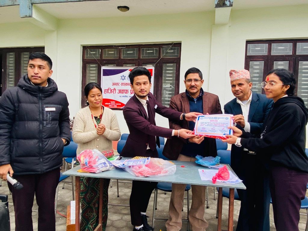 तनहुँ: व्यास नगरपालिका वडा -१ विज्ञानचौरमा अवस्थित आदिकवि भानुभक्त क्याम्पसको “व्यवस्थापन विद्यार्थी सर्कल”द्वारा अन्तर सङ्काय स्तरीय हाजिरीजवाफ प्रतियोगिता कार्यक्रम सम्पन्न गरेका छन् । सर्कलका कर्यवाहक अध्यक्ष दिनेश विश्वकर्मा को अध्यक्षतामा सम्पन्न सो कार्यक्रमको उद्द्घाटन गर्दै प्रमुख अतिथि सर्कलका प्रमुख संरक्षक एवं क्याम्पस प्रमुख महाप्रसाद हड्खले ज्युले हाजिरी जवाफ प्रतियोगिता क्याम्पसमा २ बर्ष देखि कोभिडको कारणले रोक्नुपरेको अहिले यो कार्यक्रम व्यवस्थापन विद्यार्थी सर्कल गरेकोमा आयोजक टिमलाई धन्यवाद ज्ञापन गर्नु भएको थियो ।