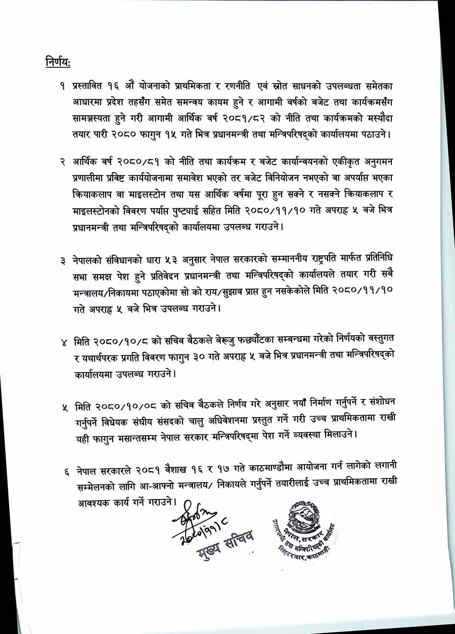 यस्तो छ सचिव बैठकको निर्णय