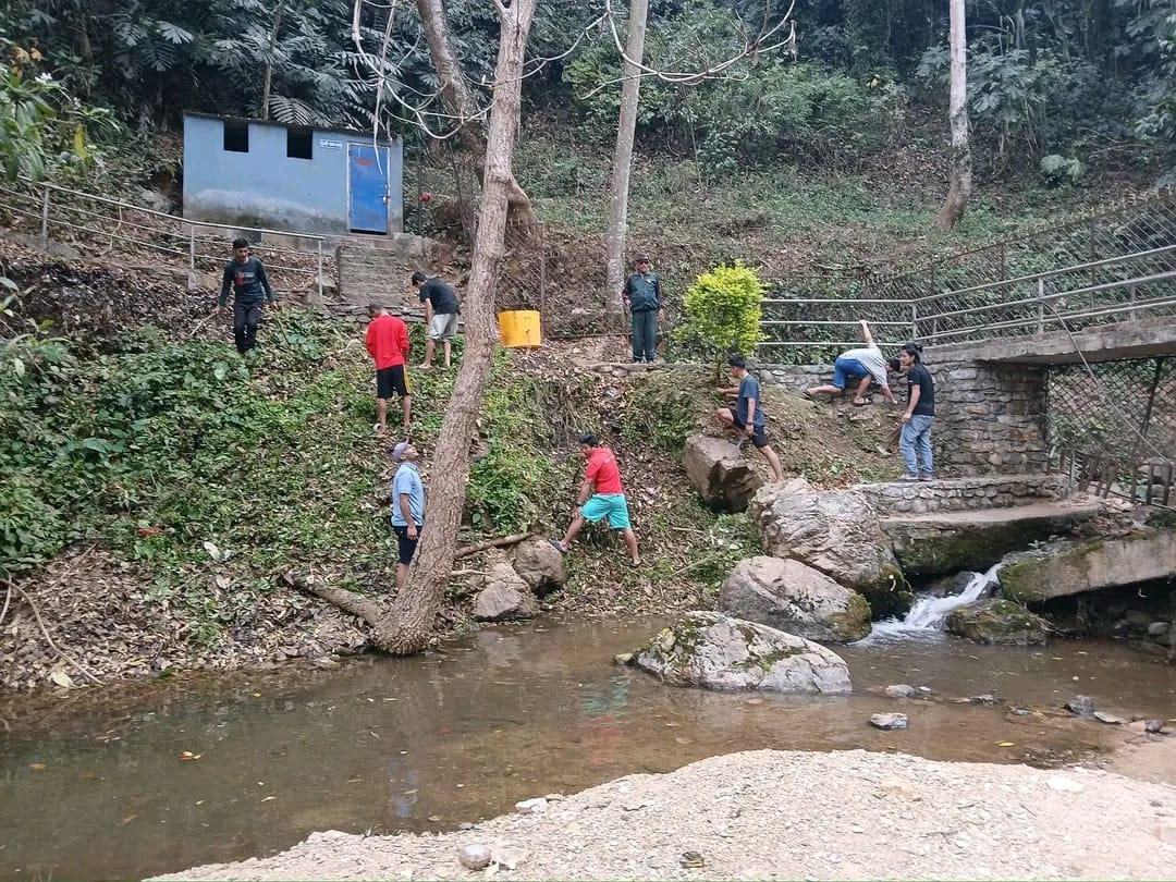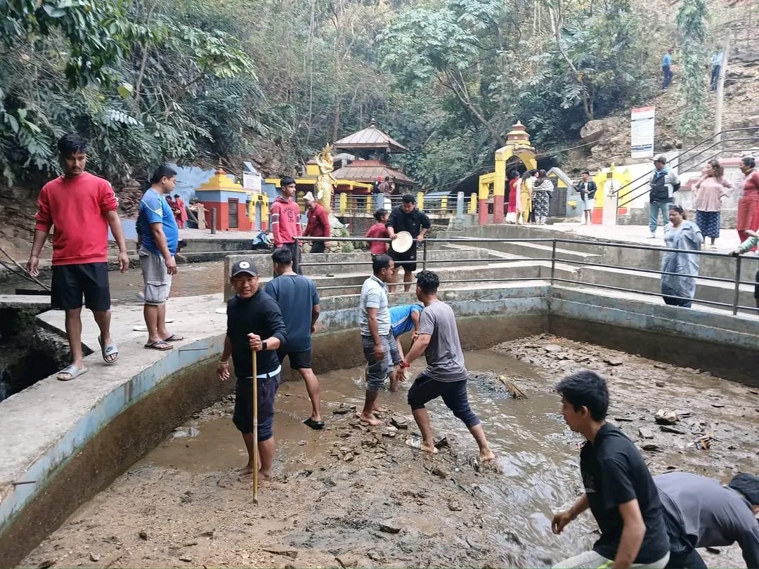 छाब्दी बाराही मन्दिर परिसरमा सरसफाइ गरिँदै स्थानीय बासिन्दा