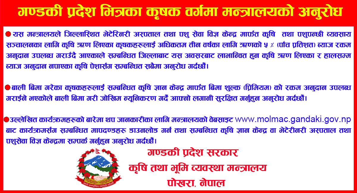 त्यस्तै, धान्य पूर्णिमा–उधौली पर्व, योमरी पुन्डि, क्रिसमस डे, तमु ल्होसार, माघी पर्व, माघे संक्रान्ति, सहिद दिवस, सोनम ल्होसार, राष्ट्रिय प्रजातन्त्र दिवस, महाशिवरात्री र ग्याल्पो ल्होसारमा पनि नियमित सेवा प्रवाह गर्नुपर्ने सरकारले प्रकाशन गरेको राजपत्रको प्रकरण १० मा उल्लेख रहेको सूचनामा जनाइएको छ ।