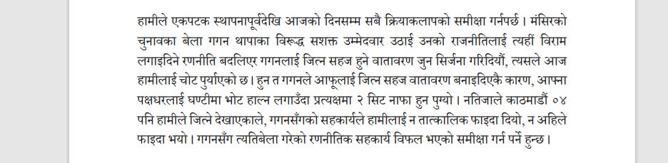 उनले नतिजाले आफूहरुले काठमाडौं–४ पनि जित्ने देखाएको भन्दै गगनसँगको सहकार्यले तात्कालिक दुवै फाइदा नभएको उल्लेख गरेका छन् । तर कुन कुन क्षेत्र चाहिँ खुलाएका छैनन् ।