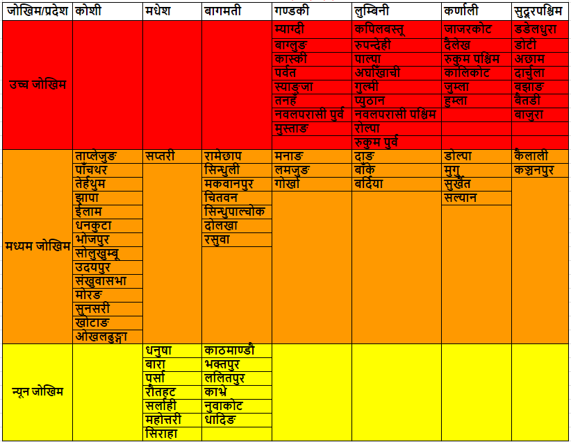 महाशाखाले ३० जिल्लाई ‘रेड जोन’मा राखेको छ ।