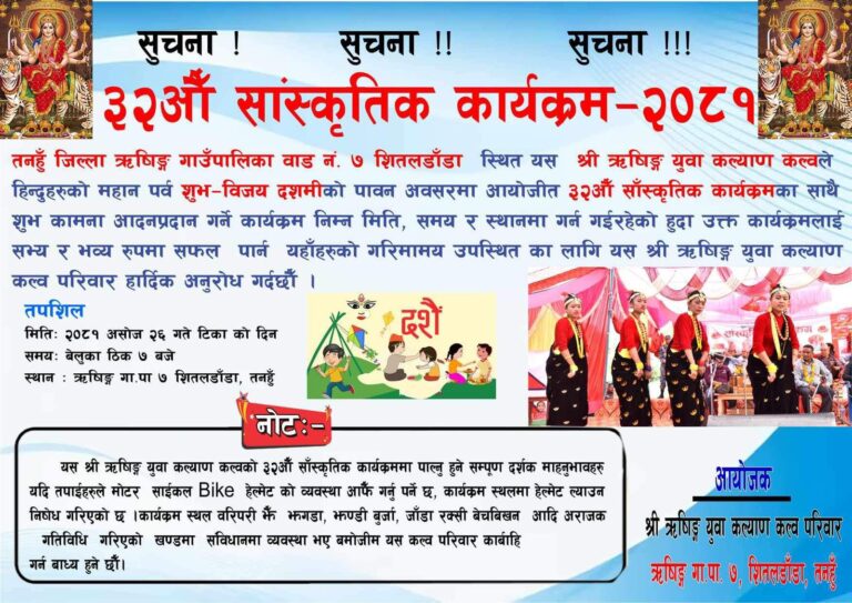 ऋषिङ युवा कल्याण क्लवको आयोजना दशै विशेष सांस्कृतिक कार्यक्रम हुन लागेको हो।