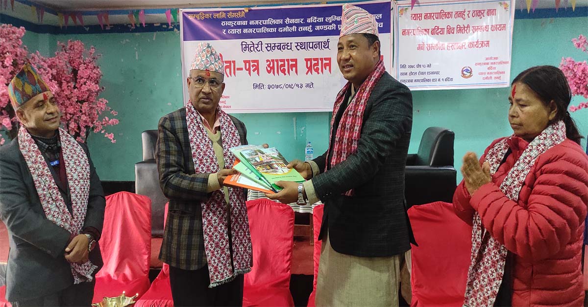तनहुँको व्यास र बर्दियाको ठाकुरबाबा नगरपालिका बीच मितेरी सम्बन्ध जोडियो